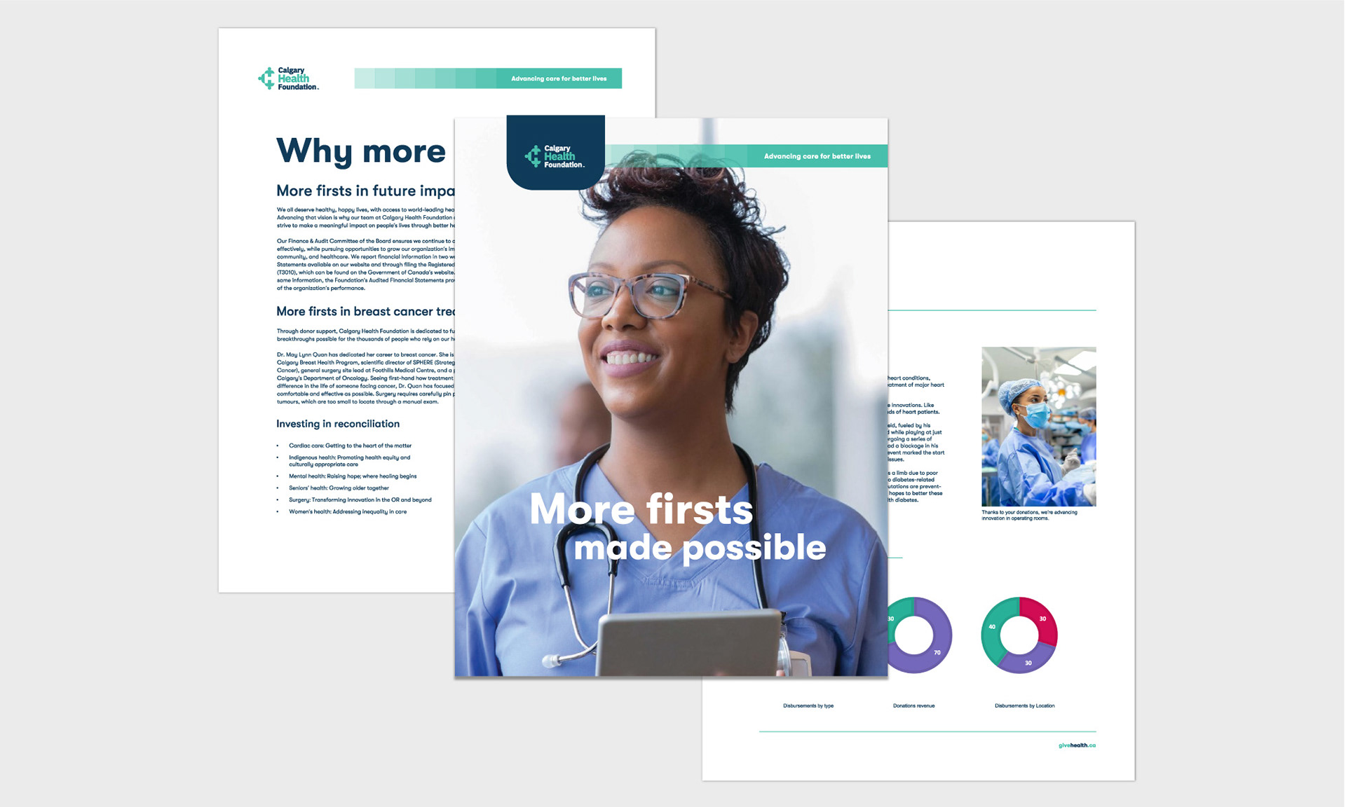 Refining and customizing design elements for both digital and print marketing materials to align with Calgary Health Foundation’s branding and communication goals.